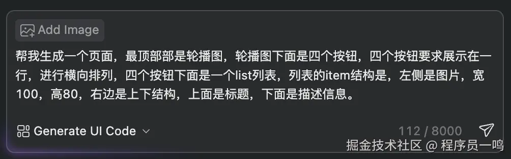 或者在输入框中,输入反斜杠"/"后,选择Generate UI Code。