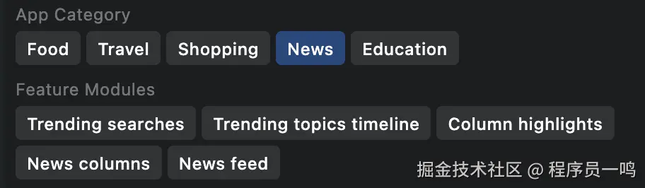 每个领域,点击后,都有很多的功能模块,比如新闻下有:热门搜索、热门话题、时间线、专栏亮点、新闻专栏、新闻推送。