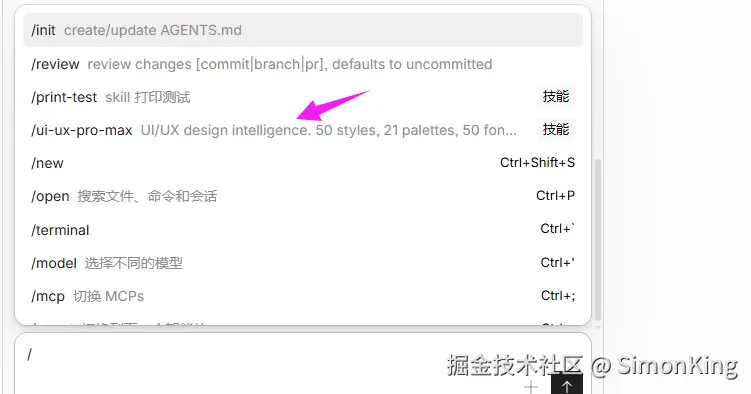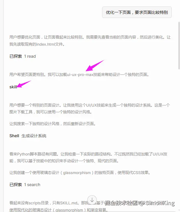 我们发现已经调用ui-ux-pro-max了。