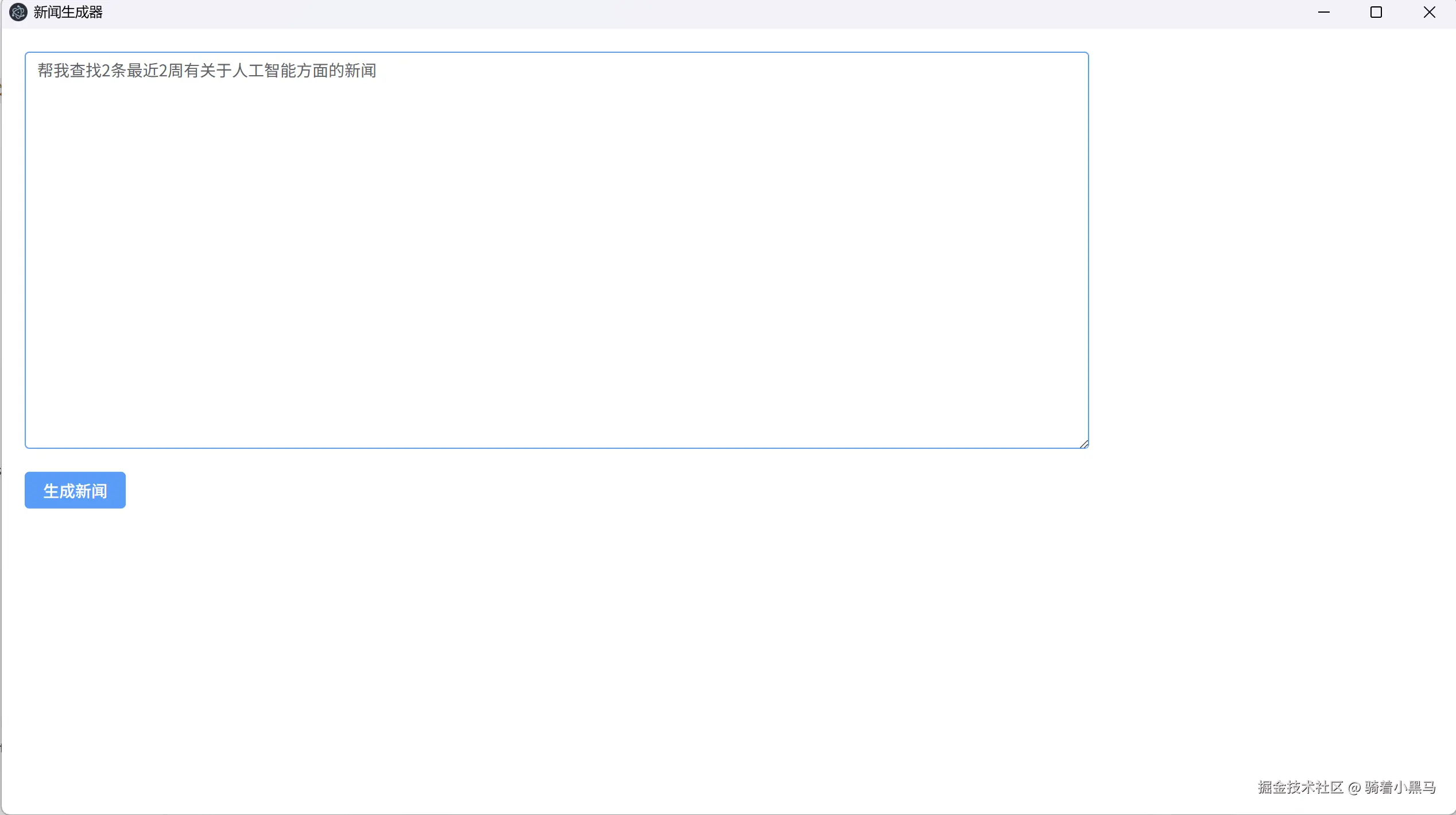 图:应用主界面,左侧输入新闻主题,右侧显示生成的新闻列表