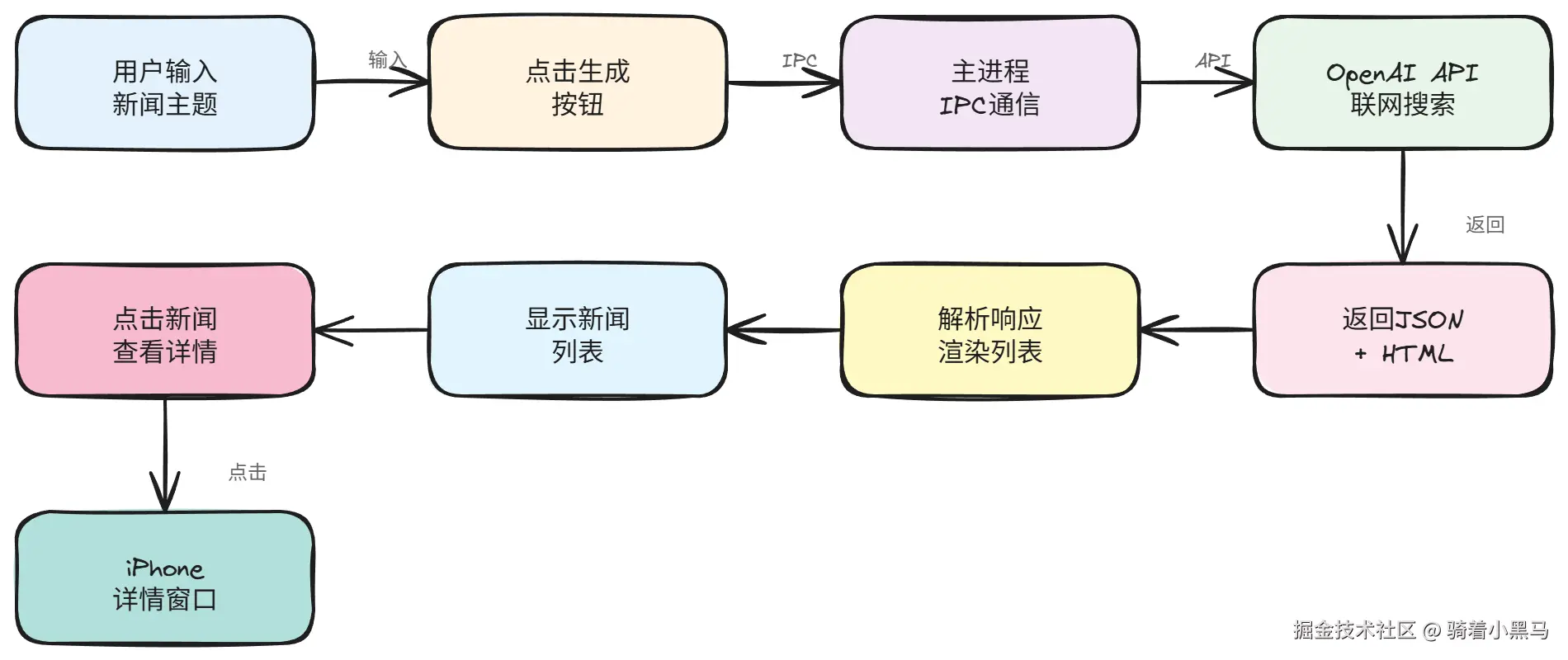 ✅ 智能新闻搜索与生成 ✅ 精美的 HTML 自动渲染 ✅ iPhone 模拟器展示效果 ✅ 多窗口管理(主窗口 + 详情窗口) ✅ 跨平台支持(Windows/macOS/Linux)