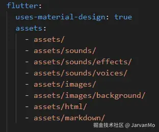 显然,我们需要创建一个 assets/markdown 文件夹,放入 content.md 文件,并在 pubspec.yaml 中声明该文件夹。
