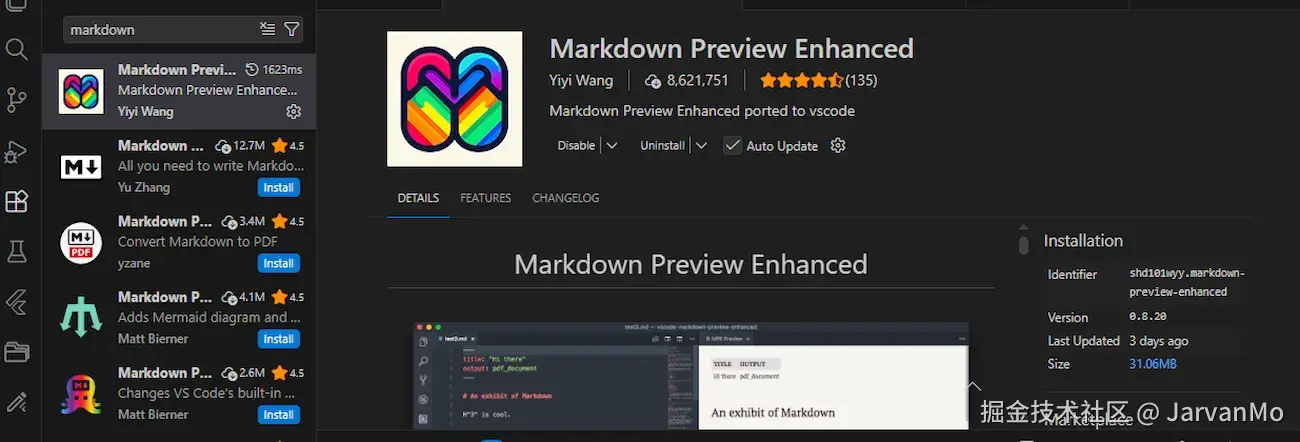 有趣的是,根据名字来看,VS Code 排名最靠前的前两(可能前三)个 Markdown 扩展插件都是中国人写的。Markdown 似乎对中国人有着某种特殊的吸引力。致敬。我使用的是这一个: