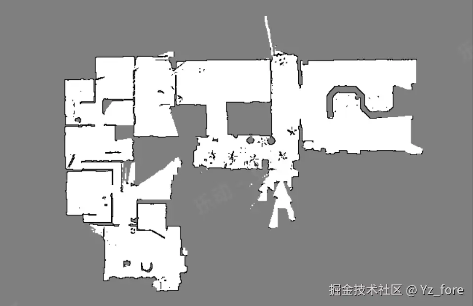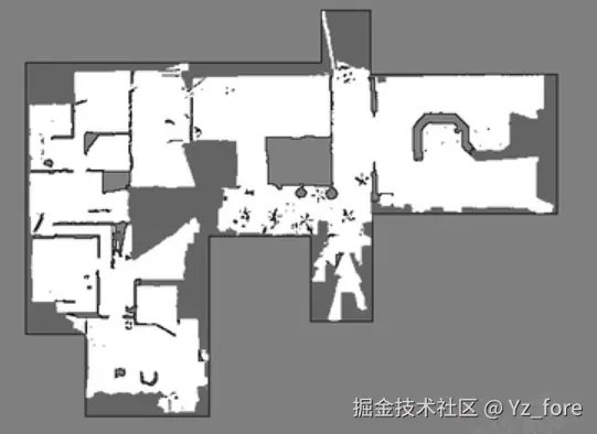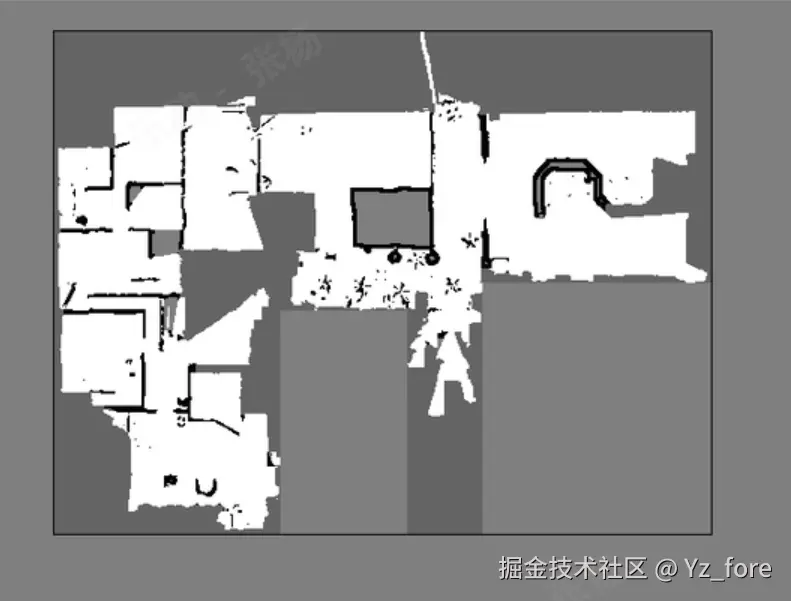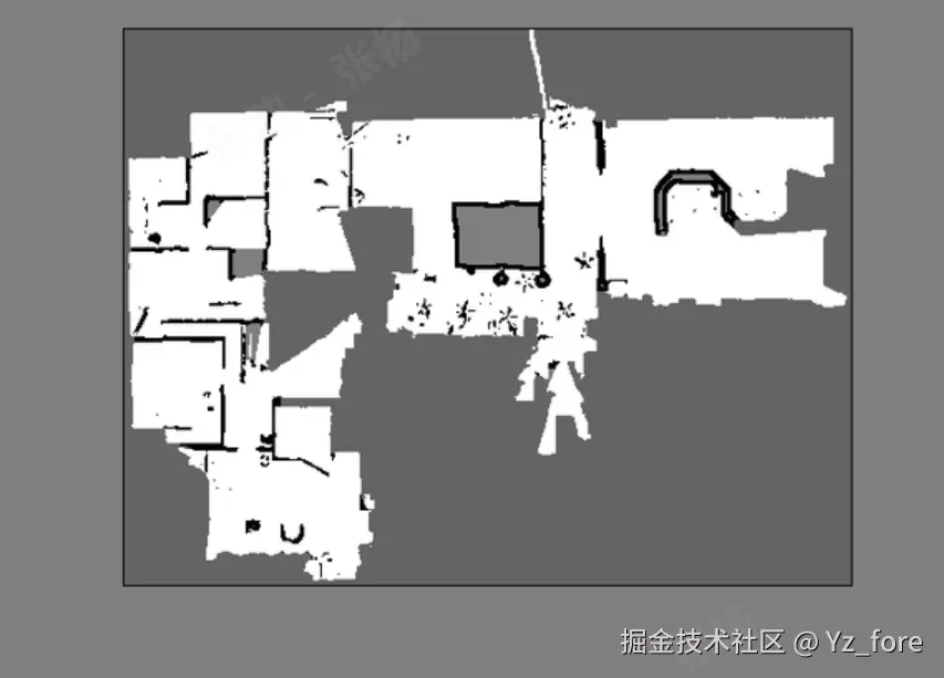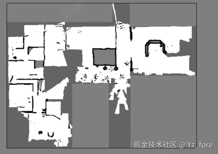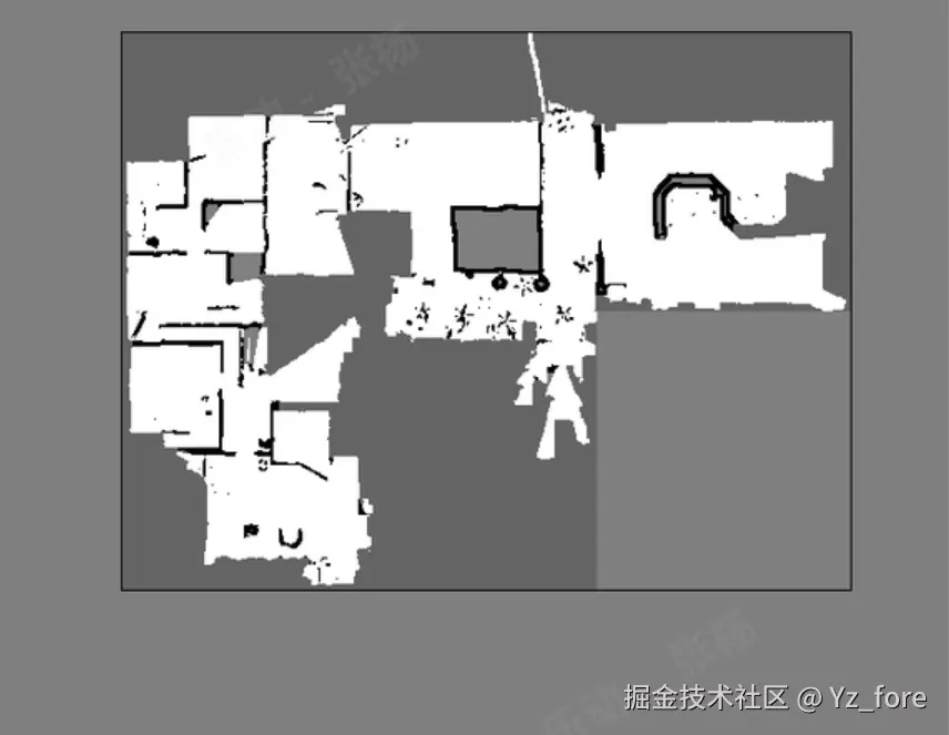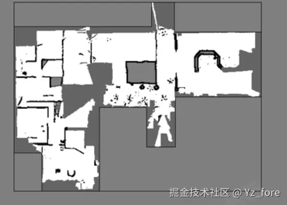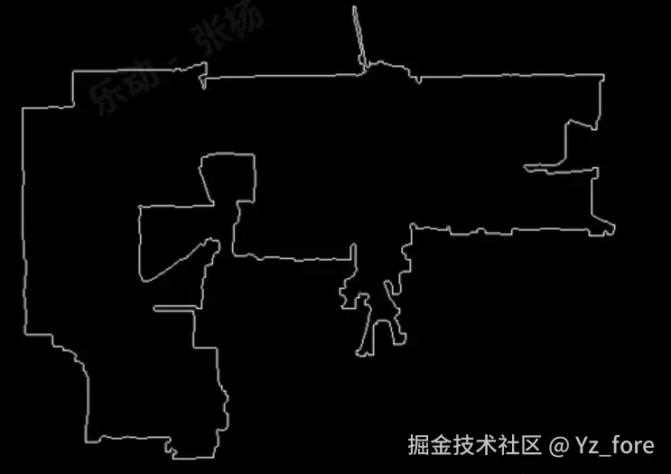 Beautifi4 是地图美化算法中的一个重要函数,主要用于对SLAM生成的地图进行后处理优化。该函数通过轮廓检测、膨胀操作、最大内接矩形算法等技术,对地图进行智能美化处理,生成房型图。下面以一个例图展示每步的效果