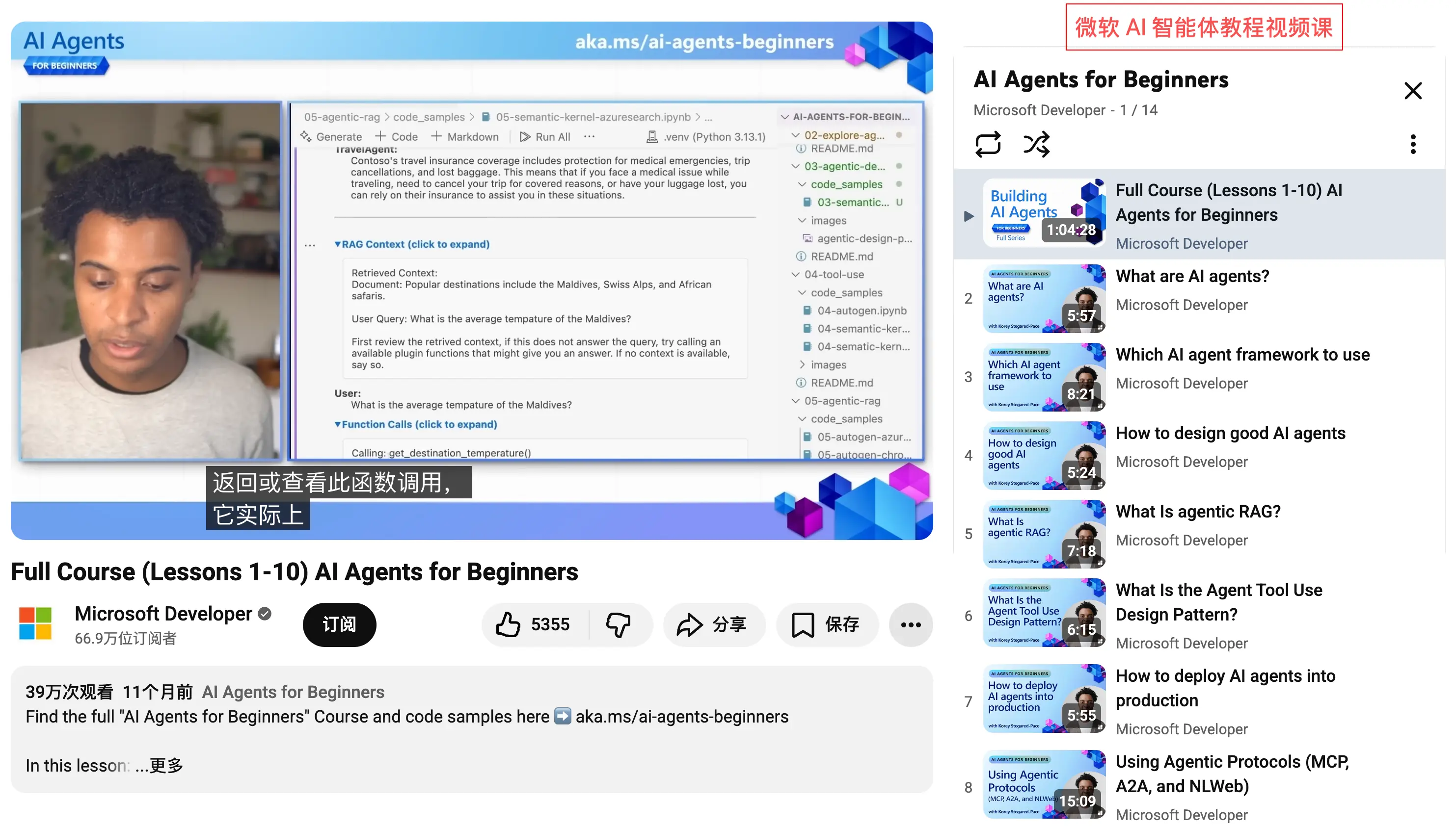 之前给大家分享过 斯坦福的 Vibe Coding 课,那门课更偏宏观的 AI 编程方法论和工程体系。微软这门课的定位不太一样,它聚焦在 AI Agent 开发这一个方向上,从概念到落地讲得非常细,适合想动手搞 Agent 的同学。