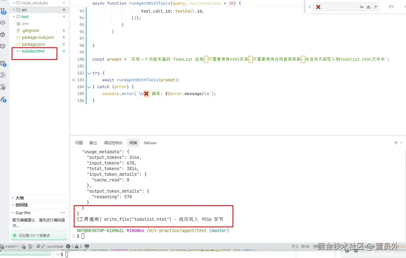 可以看到大模型成功创建todolist.html文件,并将代码写入,并且代码可以正常运行