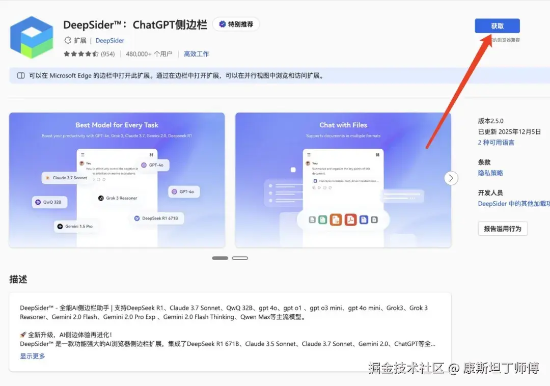DeepSider插件安装教程可参考下图: