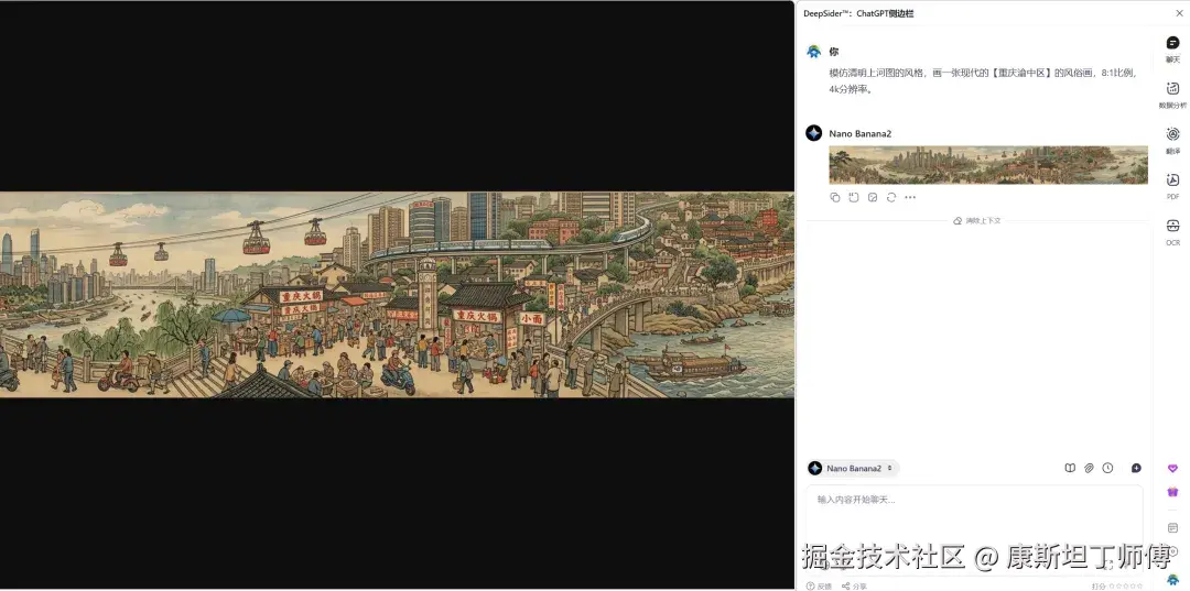 DeepSider是一款浏览器插件,在NanoBanana2发布的第一时间就已经接入,面向所有用户开放。