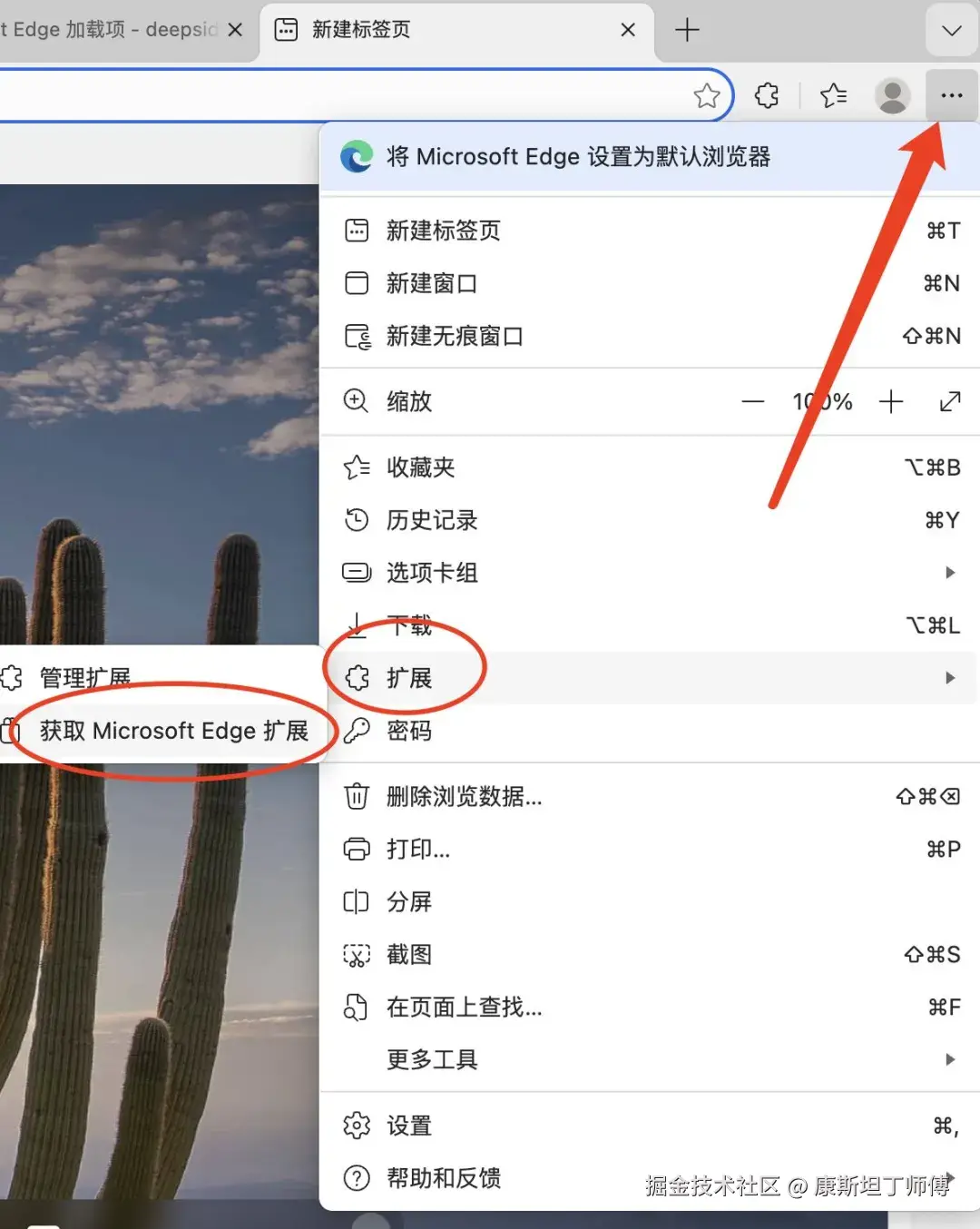 ①打开Edge浏览器右上角-获取扩展;