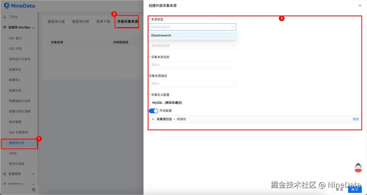 慢查询分析模块新增支持从外部来源采集慢日志 ,本次适配Elasticsearch作为外部数据源。