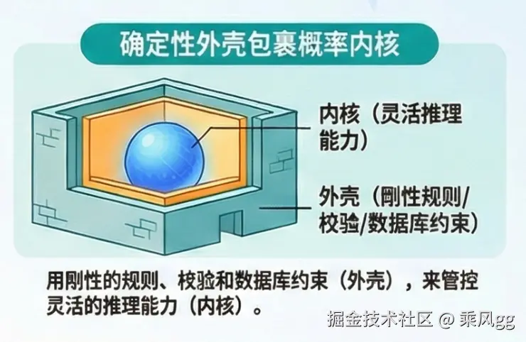 企业级LLM架构的核心设计原则,本质是"确定性外壳包裹概率内核------这是平衡LLM灵活性与系统可控性的唯一可行路径。