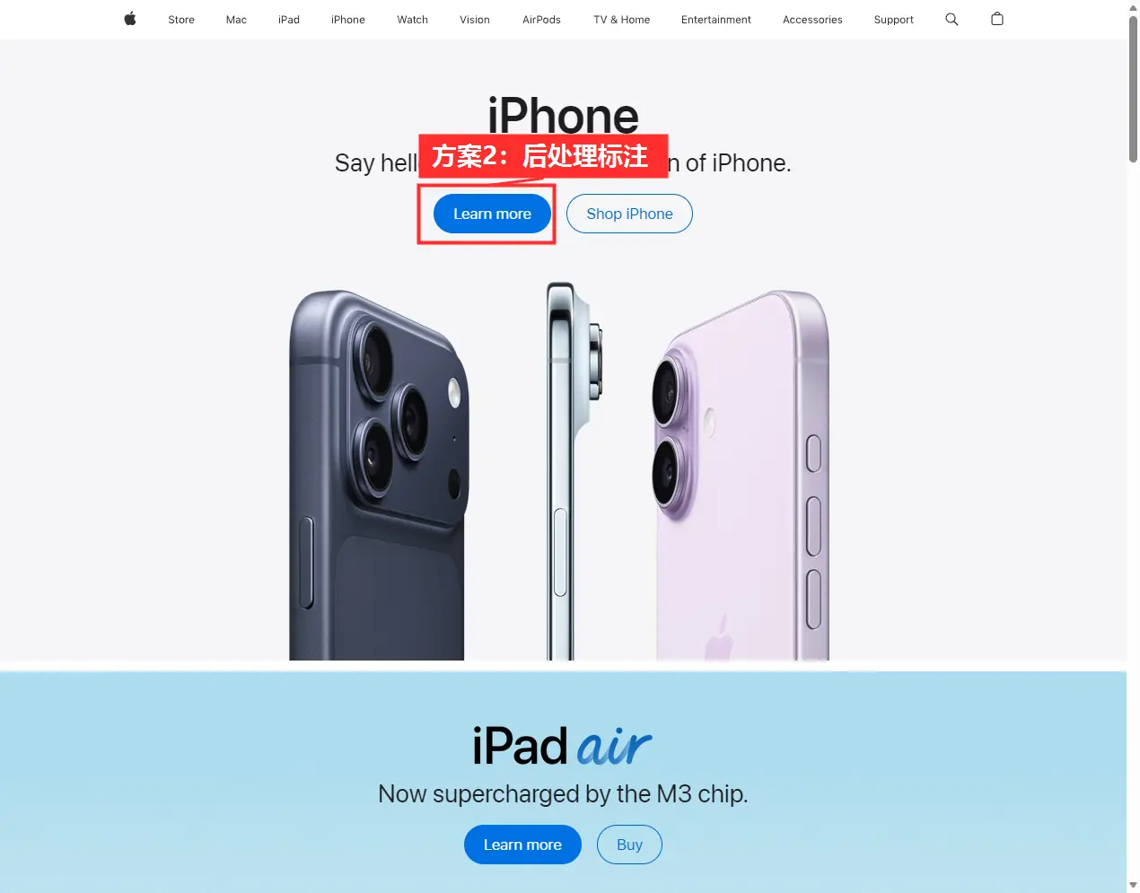 本次在复杂布局页面(Apple 官网 PC + H5)对三种方案做了实测对比,结论如下: