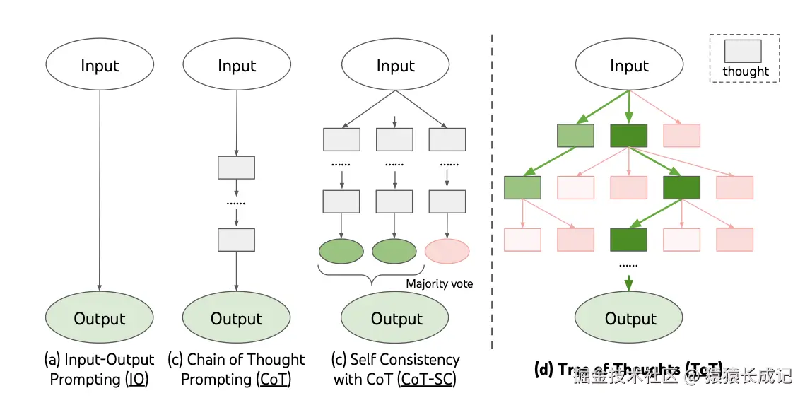 ToT 在 2023 年由研究者系统化提出:将大模型的生成能力与经典搜索/规划框架结合,把"生成-评估-选择-回溯"显式化,从而在需要组合推理与探索的任务上提升稳定性与可控性。