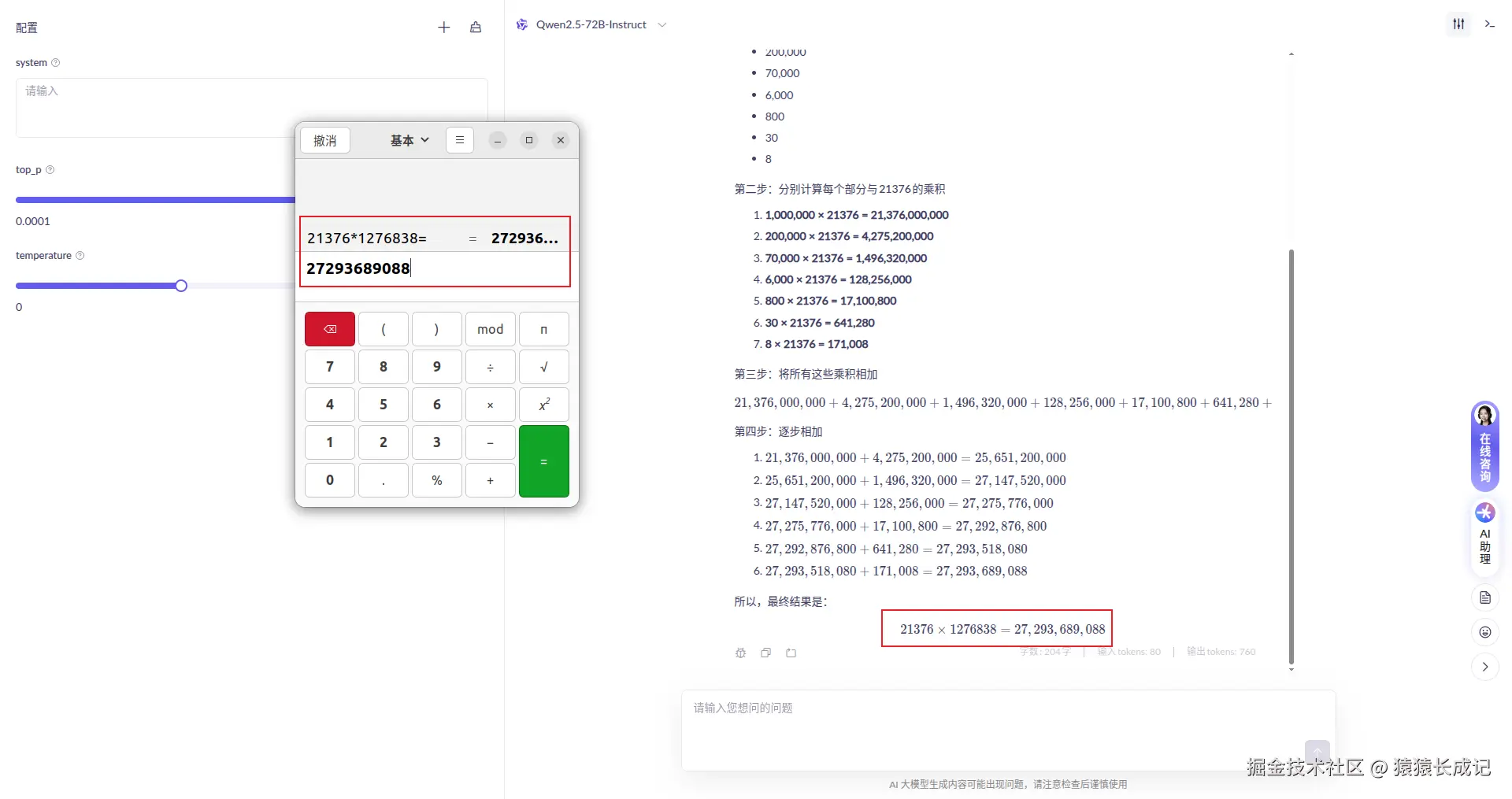 通过开启前后的对比,开启前的乘法运算结果是错误的,开启后经过逐步思考,得到了正确的计算结果。