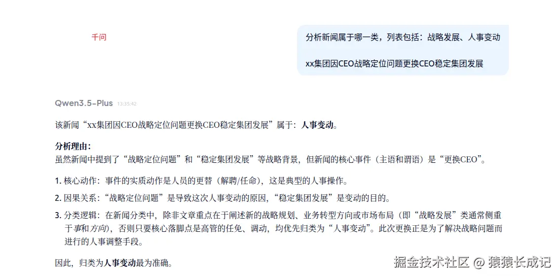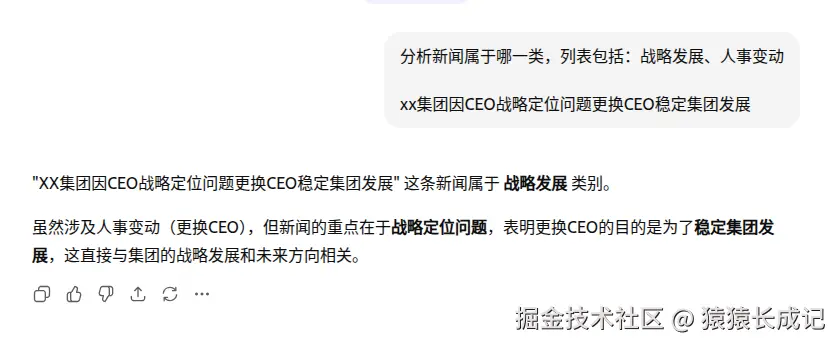 针对同一个新闻分类问题,同样的提示词不同的答案,针对此类可能模糊的问题引入自洽性机制,通过投票制获取最终答案。(当然投票多不代表肯定正确,有时候真理掌握在少数人手里,仍需谨慎)