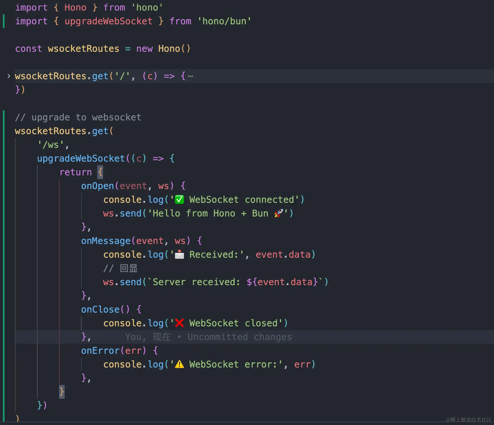 根据官网文档可以创建一个 upgradeWebSocket 的服务: