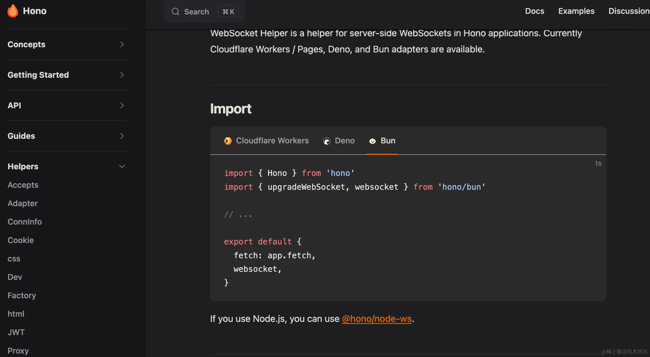 hono是一个轻量级的后端框架,支持cf和服务器部署,也支持bun结合,官方文档:hono.dev/docs/helper...