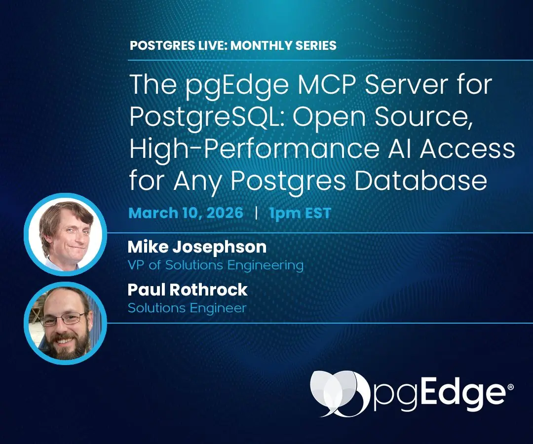 本次活动公告宣传了一场关于 PostgreSQL 的 pgEdge MCP 服务器的 Postgres Live 会议。会议将介绍模型上下文协议服务器是什么,以及为什么它比直接数据库连接更适合 AI 代理的智能方案。主题包括代币预算优化技术、更轻松快捷的数据库交互内置工具,以及与 Claude Code、Cursor 和其他平台集成的快速入门指南。该解决方案是 100%开源的,...