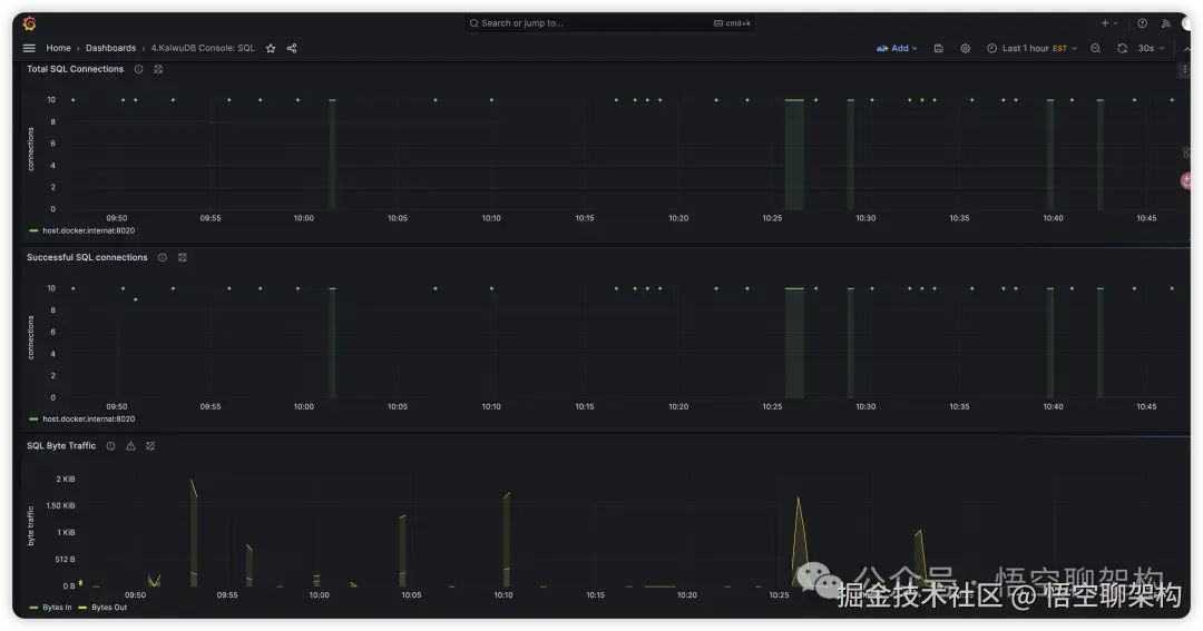 SQL:展示 SQL 相关的监控指标,用到的 dashboard 文件为KaiwuDB_Console_SQL.json。