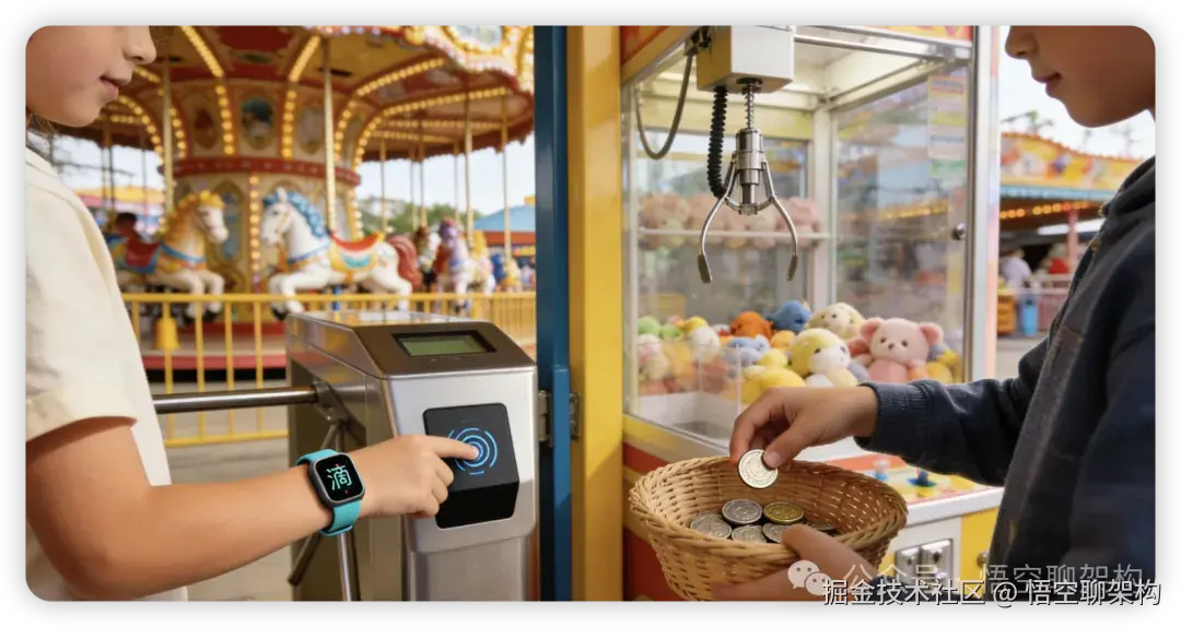 走进今天的游乐场,大家会发现一个有趣的现象,有的孩子拿着刚充完值的智能手环或储值卡,在旋转木马入口"滴"一声通过,而有的孩子拿着一筐代币,往抓娃娃机投入了 2 枚代币,看着机械臂缓缓落下。刷卡和投币并存,正是传统游乐场向数字化转型过程中的典型场景。