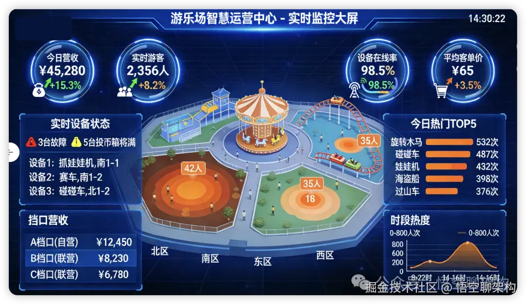每一台设备既是"印钞机",也是"数据孤岛"------如何统一管理这些设备的状态、交易记录、收入分成,成为游乐场运营者的核心痛点。