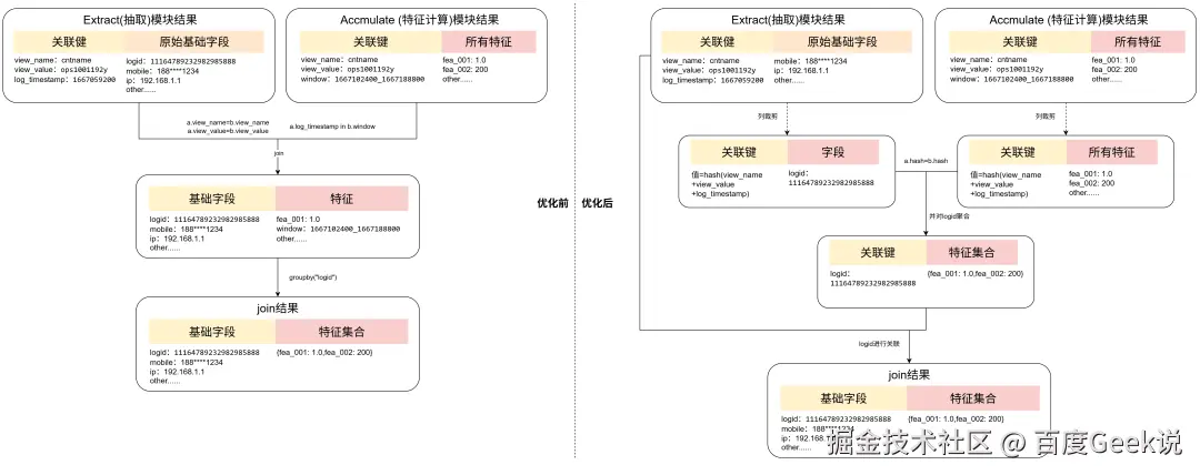 其实优化前第一步的操作就是为了将logid赋值到每一条ACC特征计算结果上,那样接下来才能进行group by logid操作。