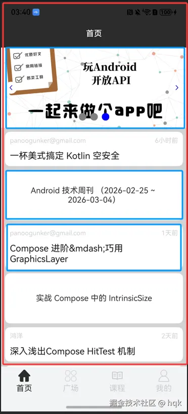 首页是 App 的门面,它集成了沉浸式状态栏、无限循环 Banner、以及高频率刷新的分页列表。但在写代码之前,我们先给首页做了一次"拆解手术"。
