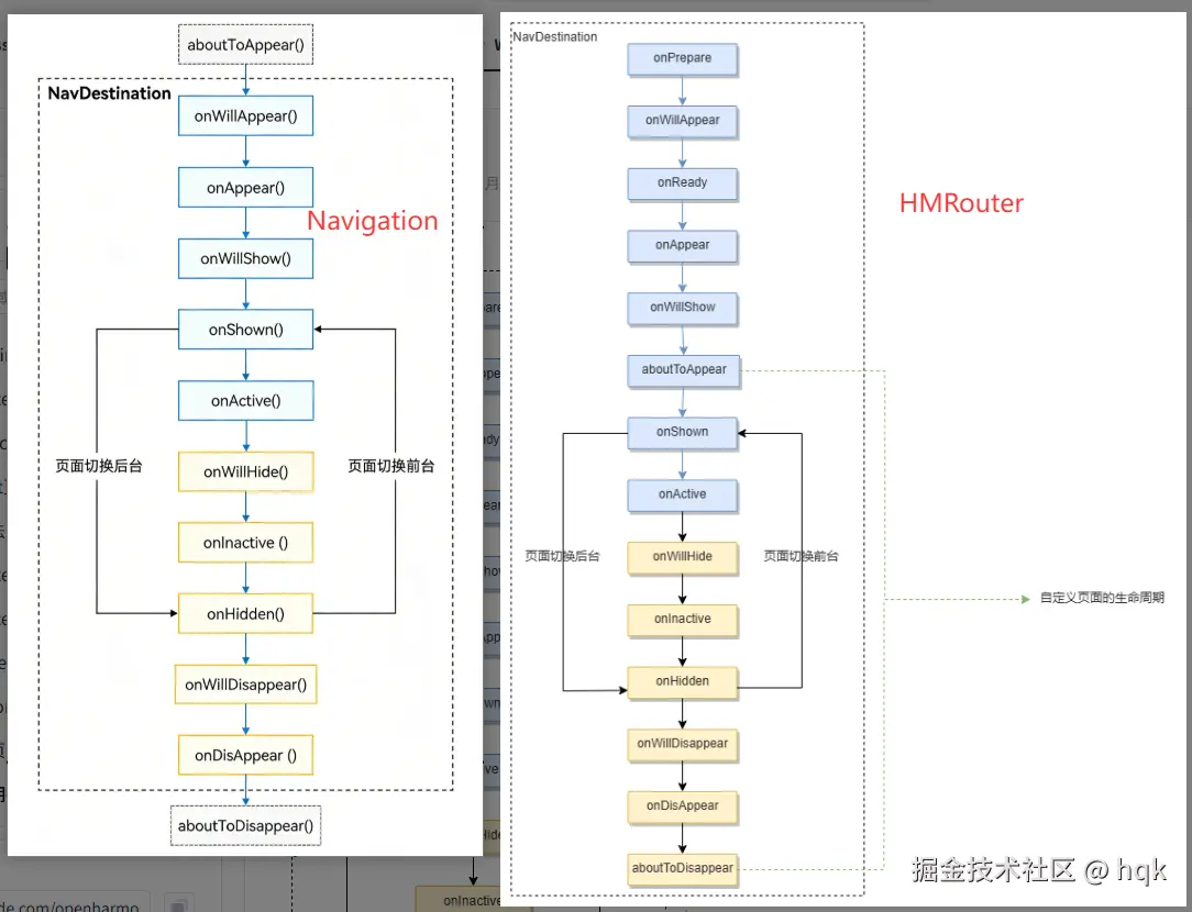 @HMRouter声明路由地址并通过lifecycle:指定关联的生命周期处理器。TS@HMRouter({ pageUrl: FeatureUserPath.COLLECT, lifecycle: CollectListLifeCycle.lifeCycleName // 通过属性绑定处理器 }) @ComponentV2 export struct CollectListPage { ... } -