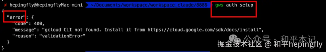 因为gws auth setup 依赖 gcloud CLI(Google Cloud CLI) ,你的电脑如果没有安装就会报错。
