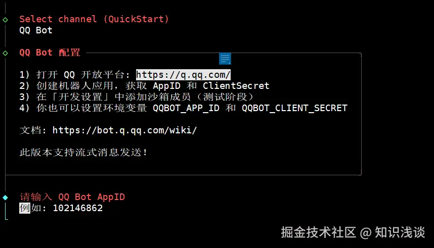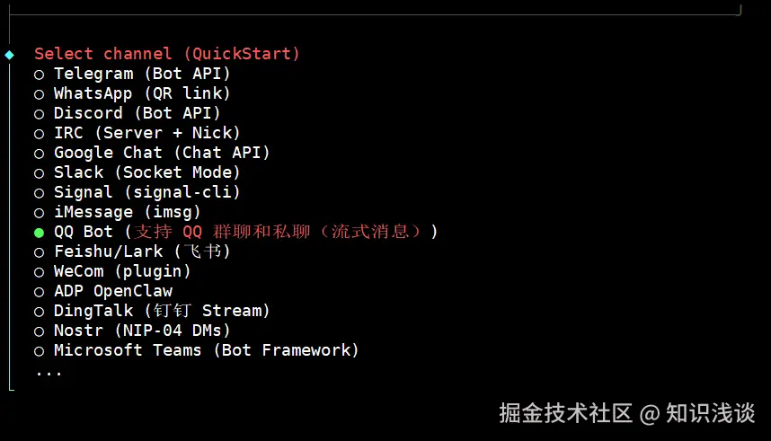 - 设置交互渠道:下一步选择 qq 作为交互窗口。