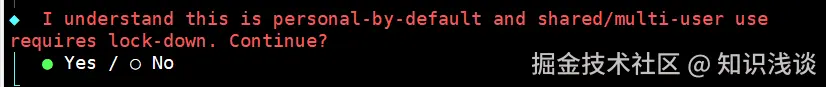 - 确认初始化:下一步选择 yes ,通过左右键可选择,然后回车。