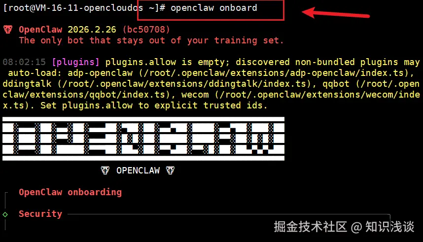 openclaw onboard开始配置。