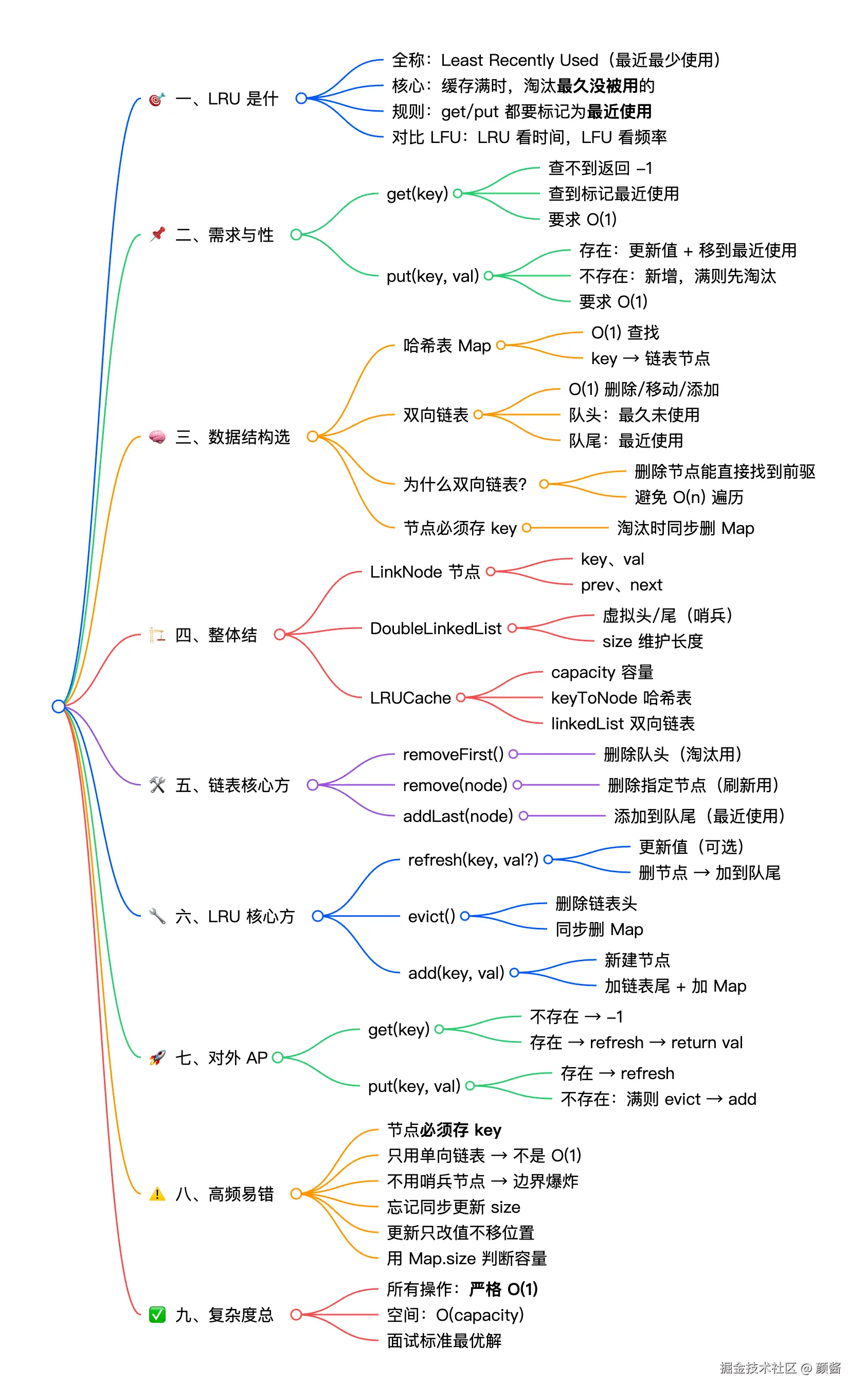 本文不会直接扔代码,而是跟着"需求分析→思路拆解→数据结构选型→逐步实现→易错点总结"的节奏,带你从零构建LRU缓存,最终写出和工业界标准一致的最优版本(双向链表+Map)。