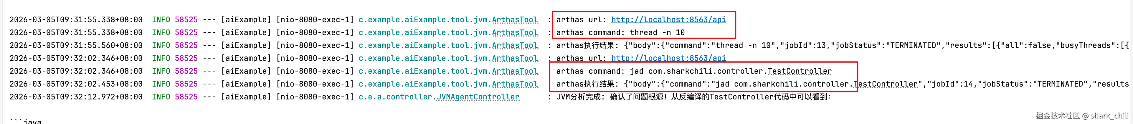 随后,我们请求http://localhost:8080/api/jvm/analyze发起调用开始对agent关键能力进行验证: