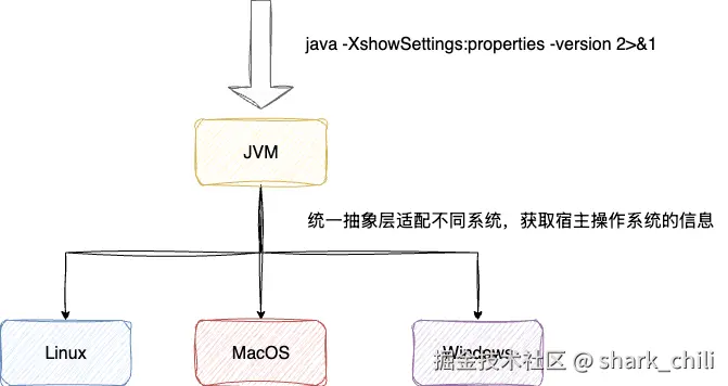 这条指令巧妙之处在于,它利用JVM的统一抽象层,让其启动加载平台相关的本地库,间接获得Java配置以及宿主操作系统的信息