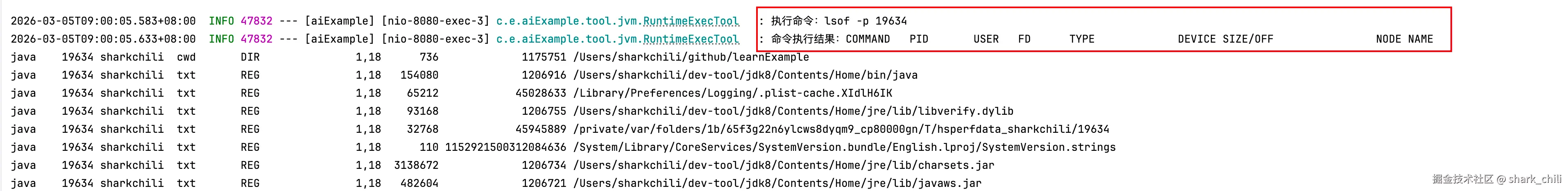 第三步:基于mac平台兼容指令执行lsof -p 19634