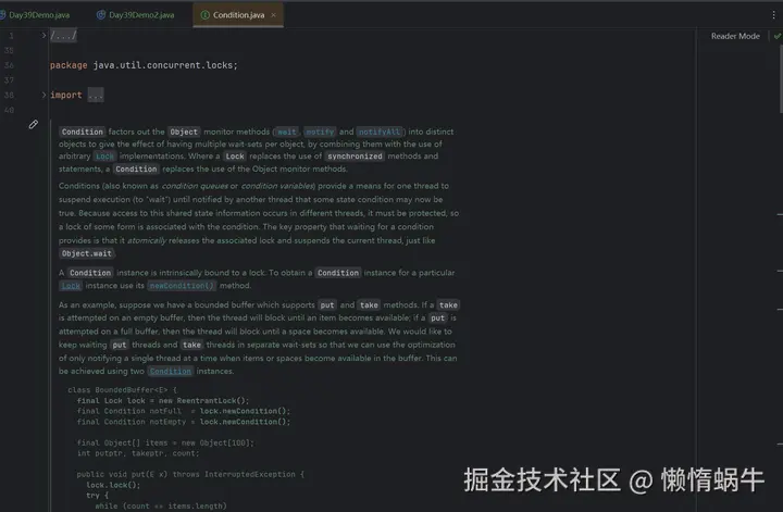 其实关于Condition的使用及与监视器锁的对比描述在Condition类的源码中已经描述得比较清晰。
