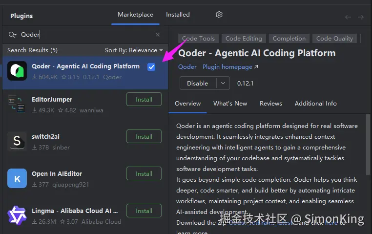 直接在插件市场搜索:Qoder