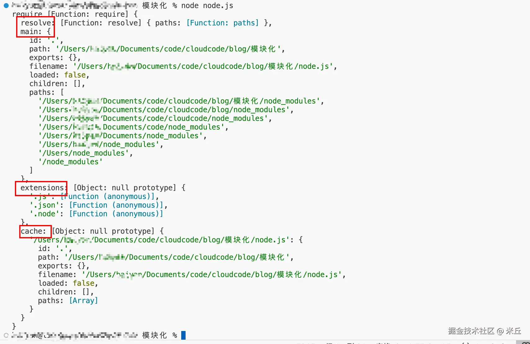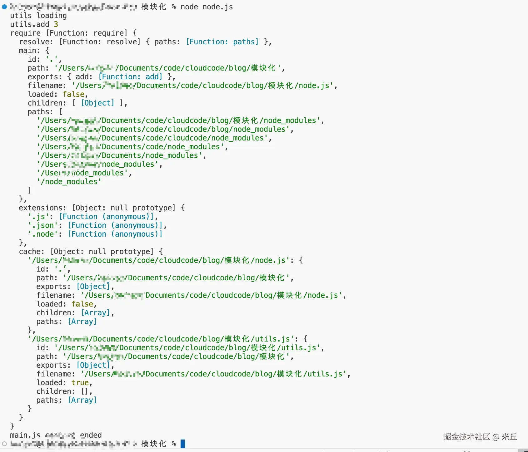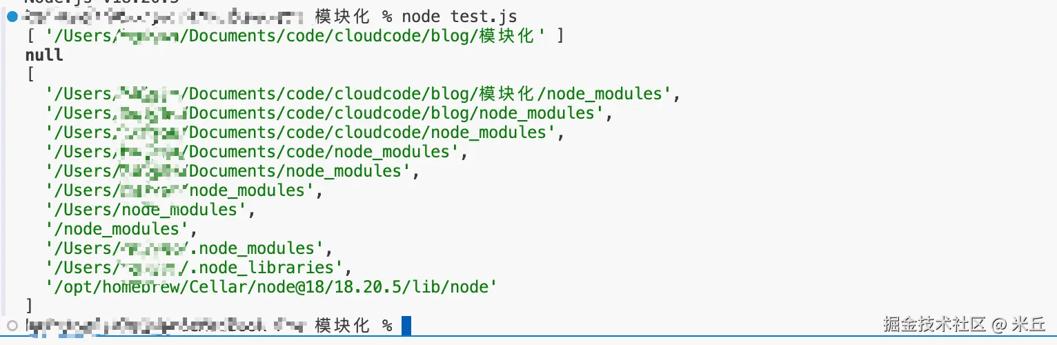 - paths,模块查找第三方依赖的路径列表,Node.js 会按这个顺序查找 node_modules 目录(从当前目录向上递归)。