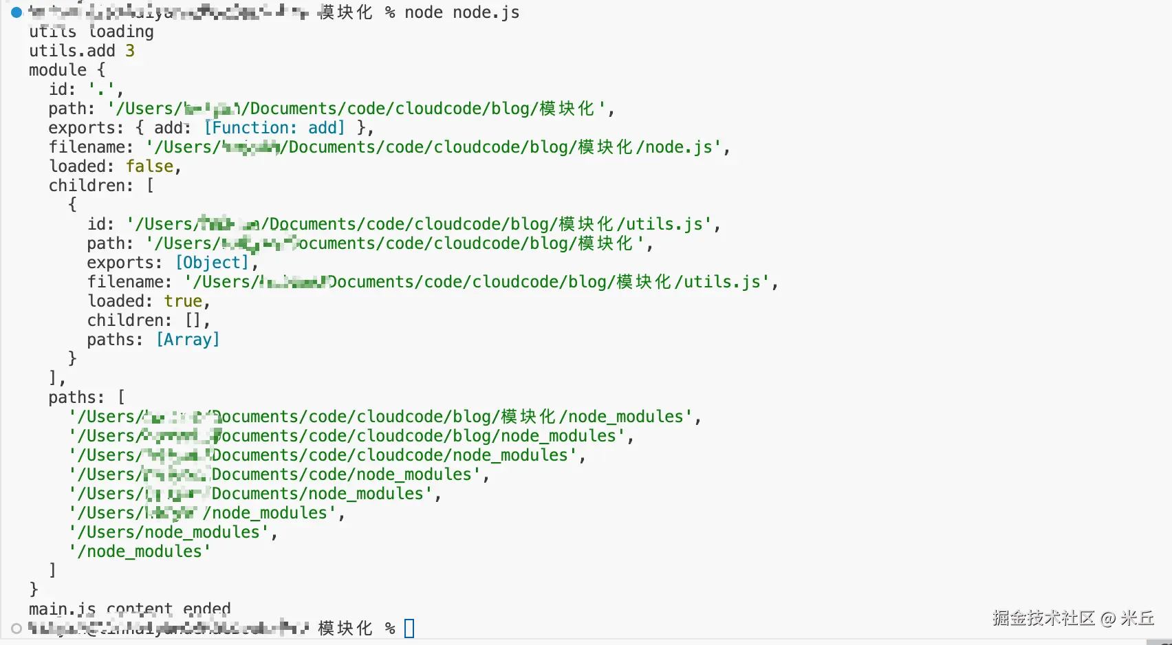 module 是每个 CommonJS 模块的「内置局部对象」(非全局),console.log(module) 打印的内容完整展示了当前模块的元信息、运行状态、依赖关系。