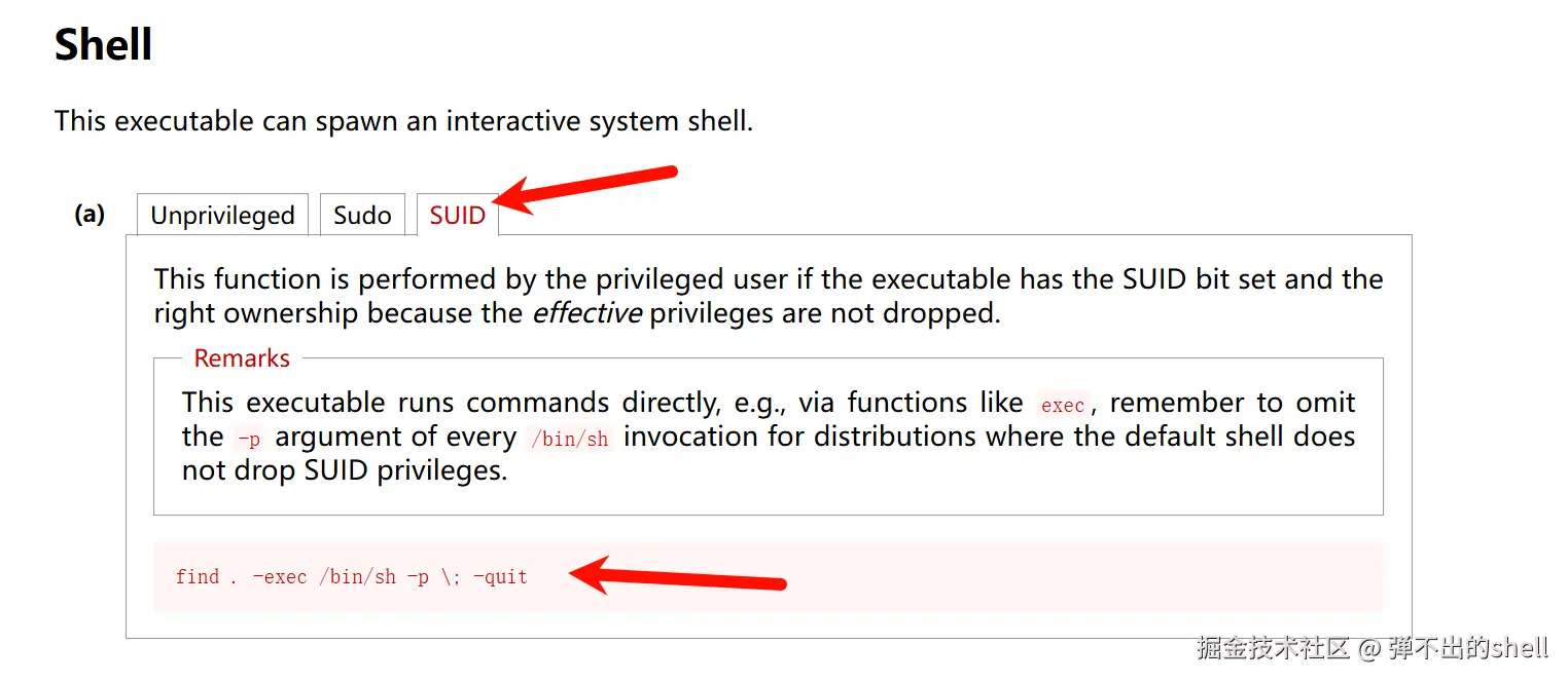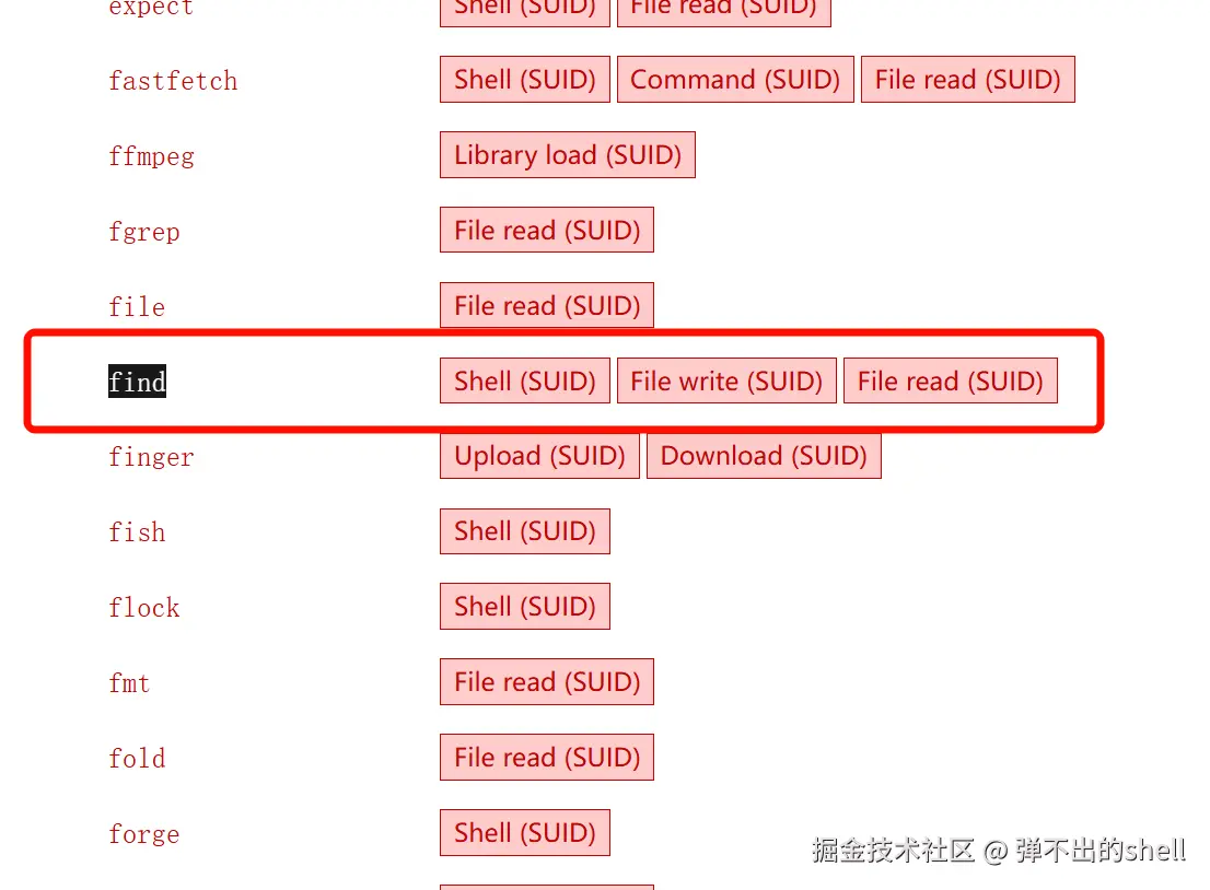 访问 GTFOBins 查询 find 的 SUID 利用方式: