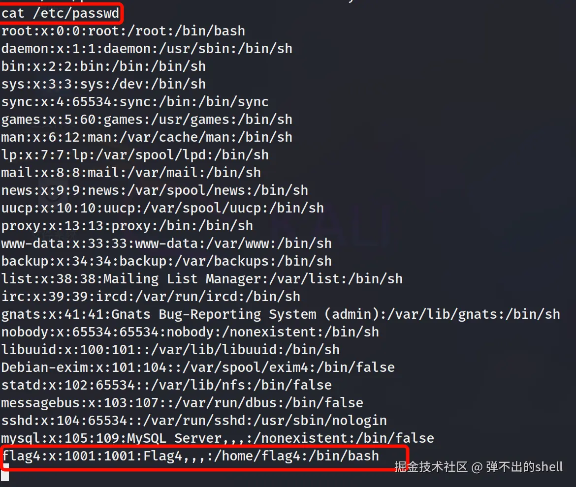 flag4:x:1001:1001:Flag4,,,:/home/flag4:/bin/bash
