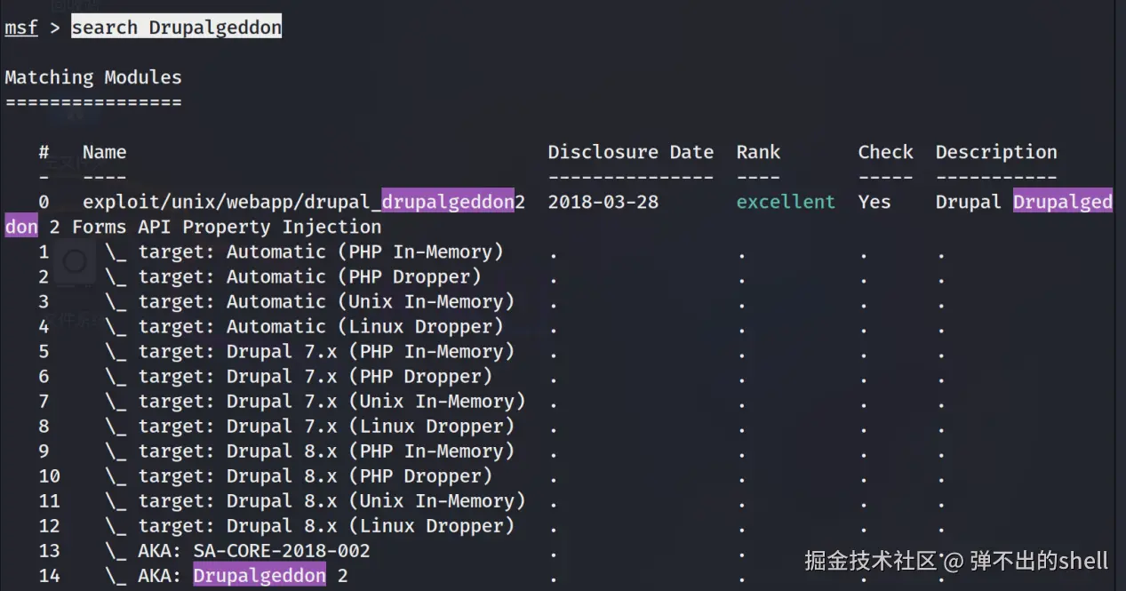 use exploit/unix/webapp/drupal_drupalgeddon2