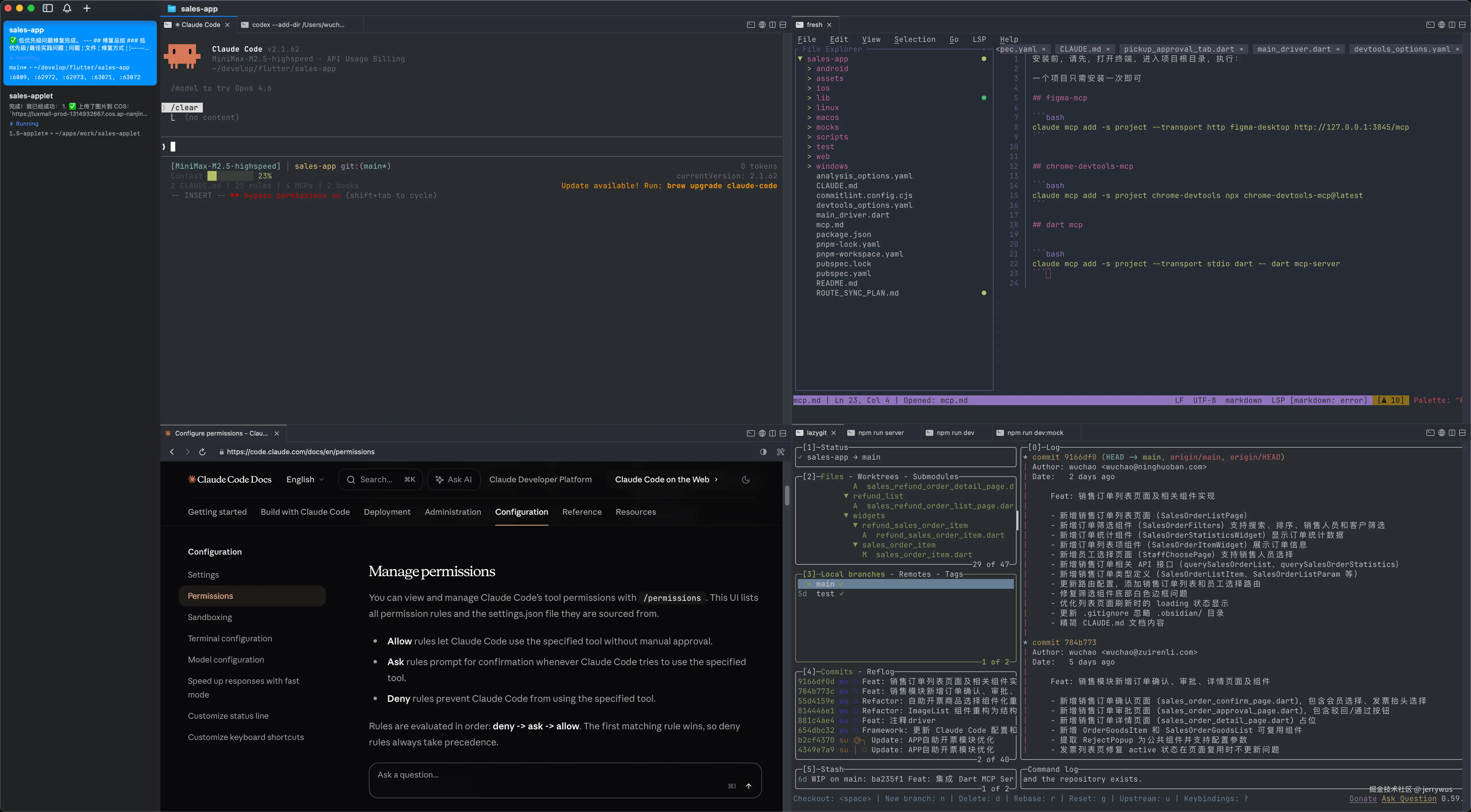 在 cmux 中装上 lazygit,你可以一边写着代码,一边用 lazygit 管理版本。遇到需要提交的时候,Ctrl + Option + 方向键 切换到底部终端,输入提交信息,一气呵成。