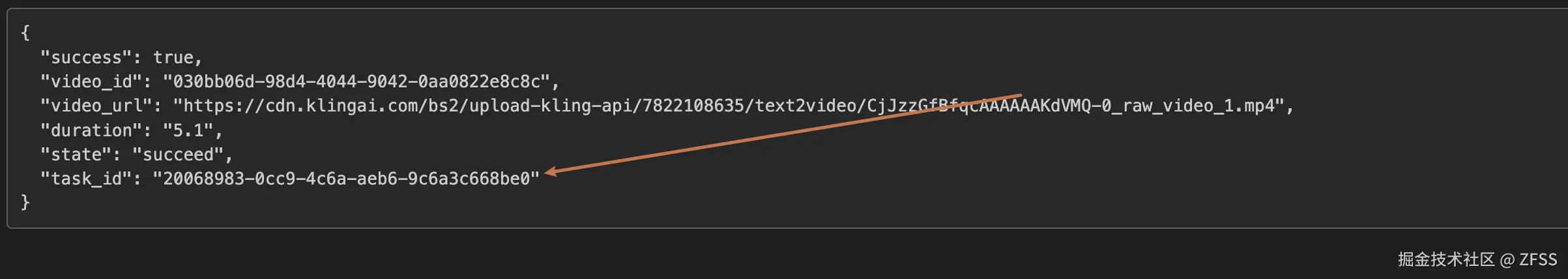 我们以 SeeDance Video Generation API 服务返回的任务ID一个为例,演示如何使用该 API。假设我们有一个任务ID:20068983-0cc9-4c6a-aeb6-9c6a3c668be0,接下来演示如何通过传入一个任务ID来。