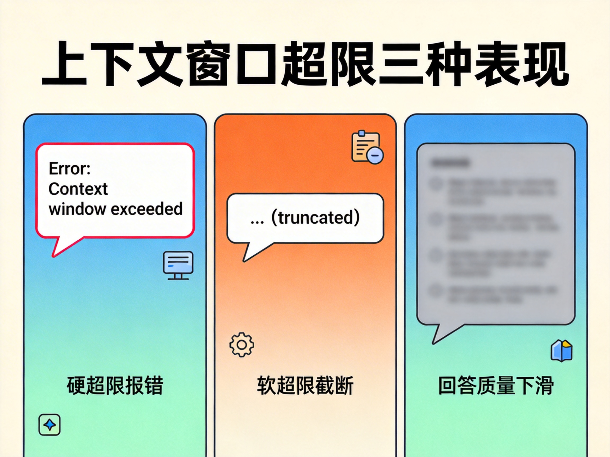 第二种,软超限:系统发生截断,你以为喂进去了,实际上关键上下文已经被丢掉。