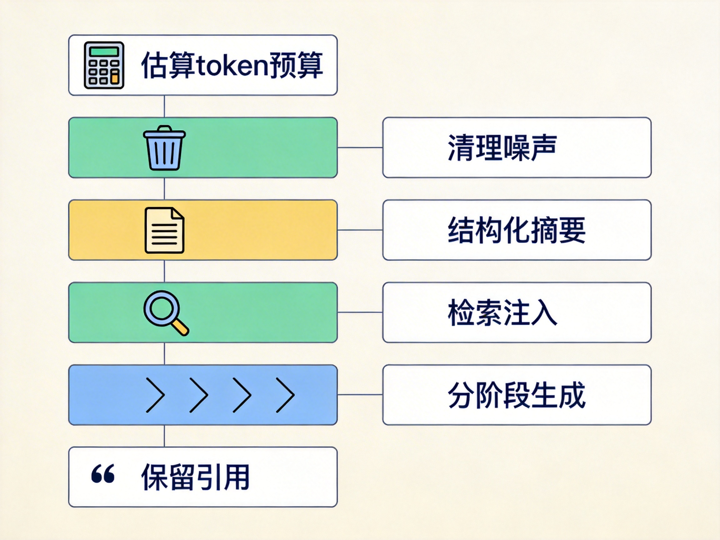 更好的方式是先检索相关片段,只注入命中的证据,再据此生成。