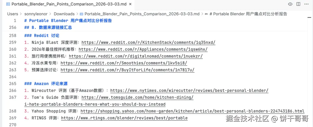 分别搜索"portable blender complaints reddit 2026"和"portable blender amazon negative reviews",对比两个来源的用户痛点有什么差异