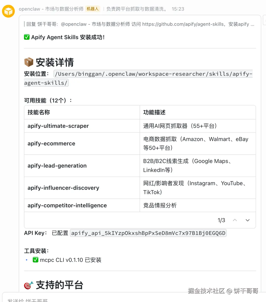 访问 https://github.com/apify/agent-skills,安装apify skills用于数据抓取api key是apify_api_5kIYzpxxxx