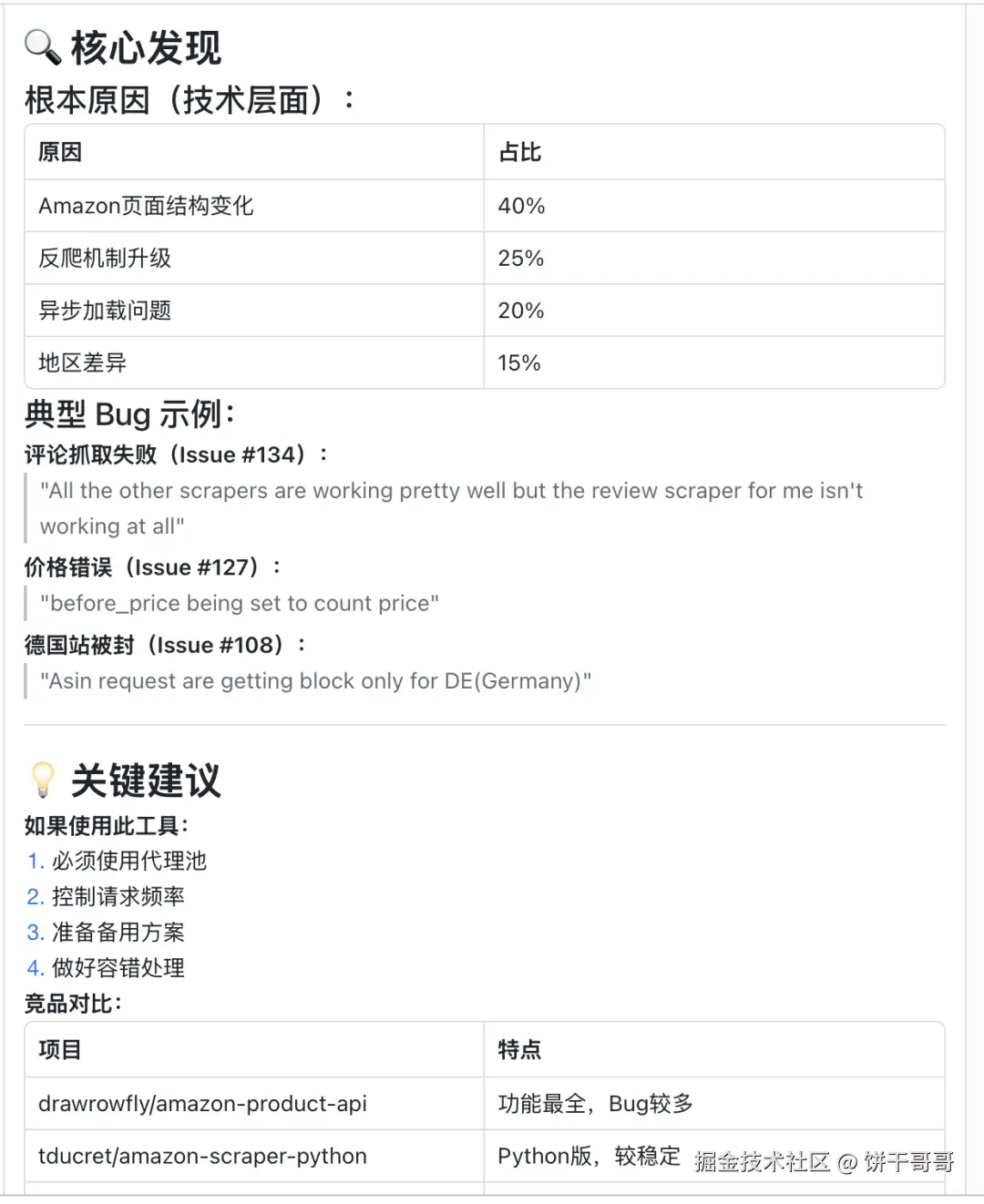 ❌ Amazon 反爬机制复杂,IP 封锁、JS 渲染、价格动态刷新,自己写爬虫维护成本极高,Amazon 页面结构一更新脚本就挂。